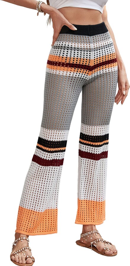 Madjtlqy Bikini Cover Up Pants High Waist Crochet Hollow Out Color Block Swimsuits Beach Pants Walmart Com